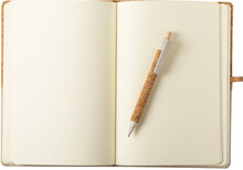 Blok A5 s deskami z přírodního korku a bavlny a 80 čistými listy. Vč. kuličkového pera z korku a pšeničné slámy, s černou náplní.