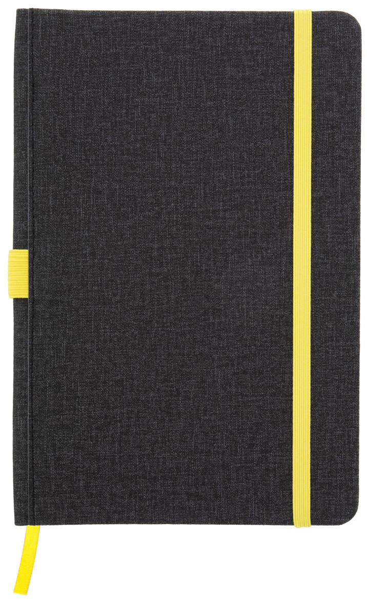 Texturovaný blok A5, potažený PU kůží se záložkou, gumičkou a držákem pera. 96 linkovaných listů.