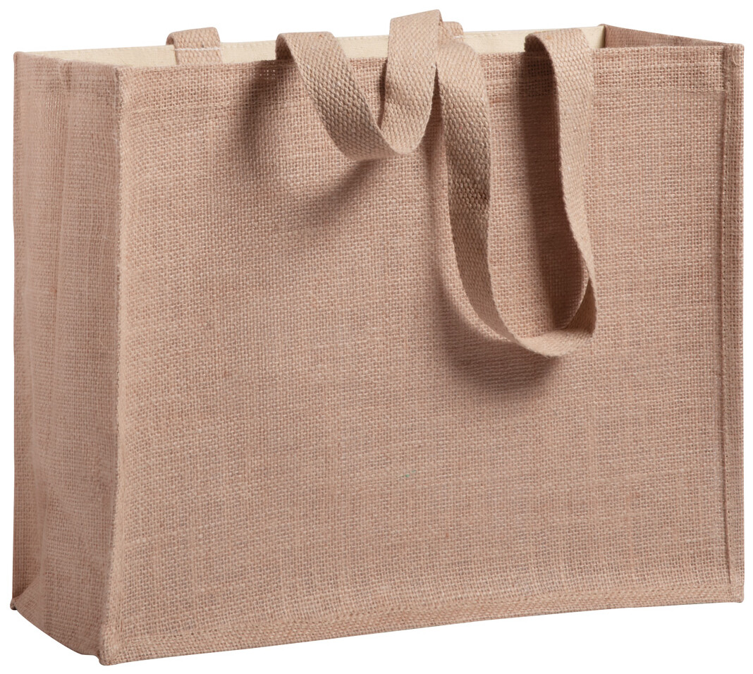 Nákupní taška v kombinaci z laminované juty a laminované bavlny s dlouhými uchy.