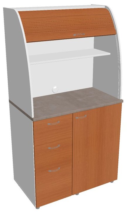 Dvě police ve vrchní části kuchyňky poskytují dostatečnou kapacitu pro vaše skleničky, hrnky či talíře. Na pracovní desku můžete umístit např. kávovar a kabelovou průchodkou v zadní části vyvedete přívodní kabel z prostoru kuchyňky.