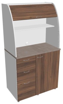 Dvě police ve vrchní části kuchyňky poskytují dostatečnou kapacitu pro vaše skleničky, hrnky či talíře. Na pracovní desku můžete umístit např. kávovar a kabelovou průchodkou v zadní části vyvedete přívodní kabel z prostoru kuchyňky.