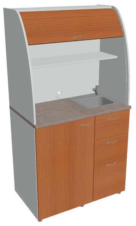 V provedení se dřezem je hloubka dvou vrchních zásuvek zkrácena právě z důvodu umístění dřezu