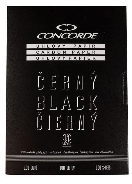 | 1715916 | Uhlový papír černý CONCORDE /100 listů/ A4 | 78,59 Kč | 95,09 Kč | 1 bal | |||
