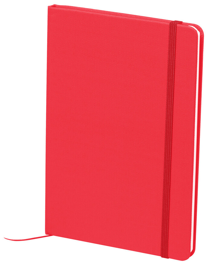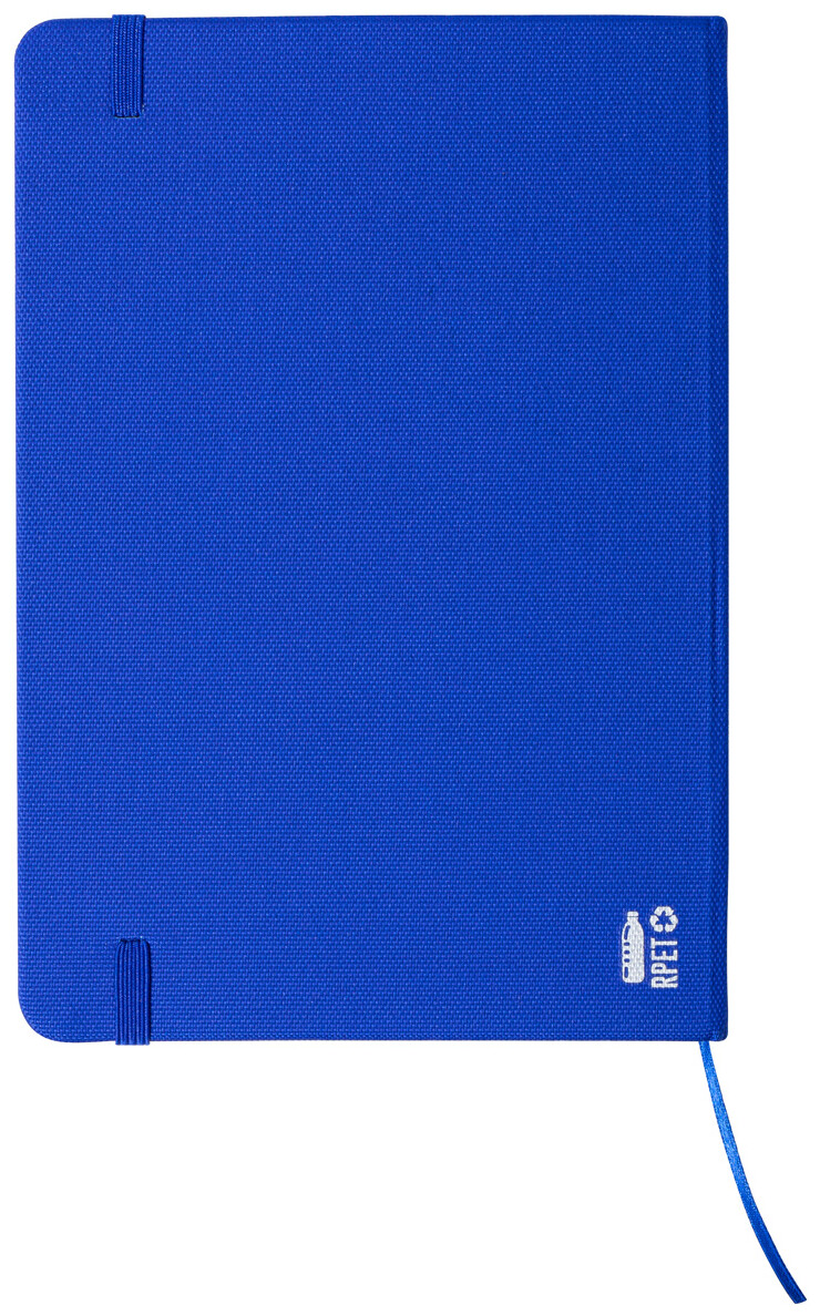 RPET blok A5 potažený polyesterem s 80 linkovanými listy, záložkou a gumičkou.