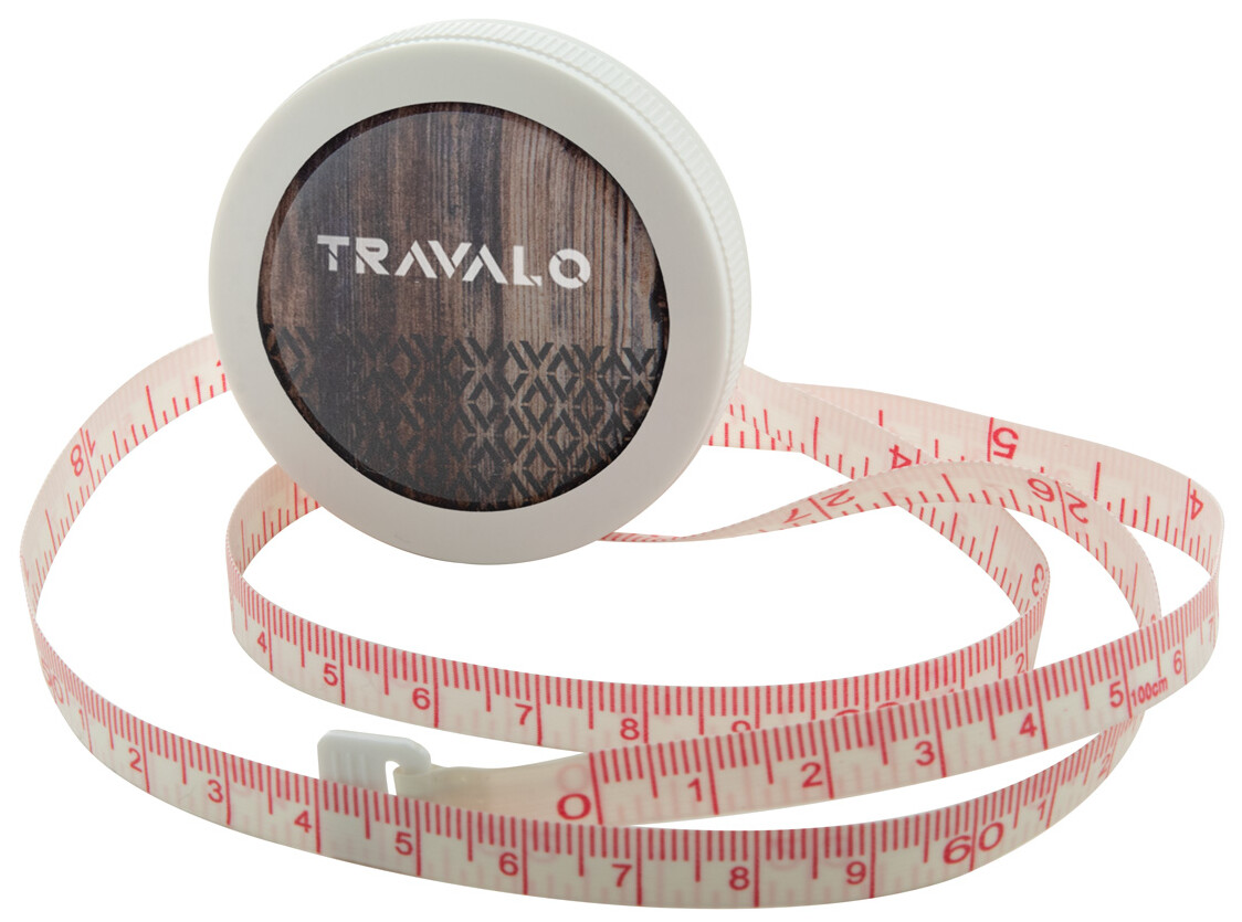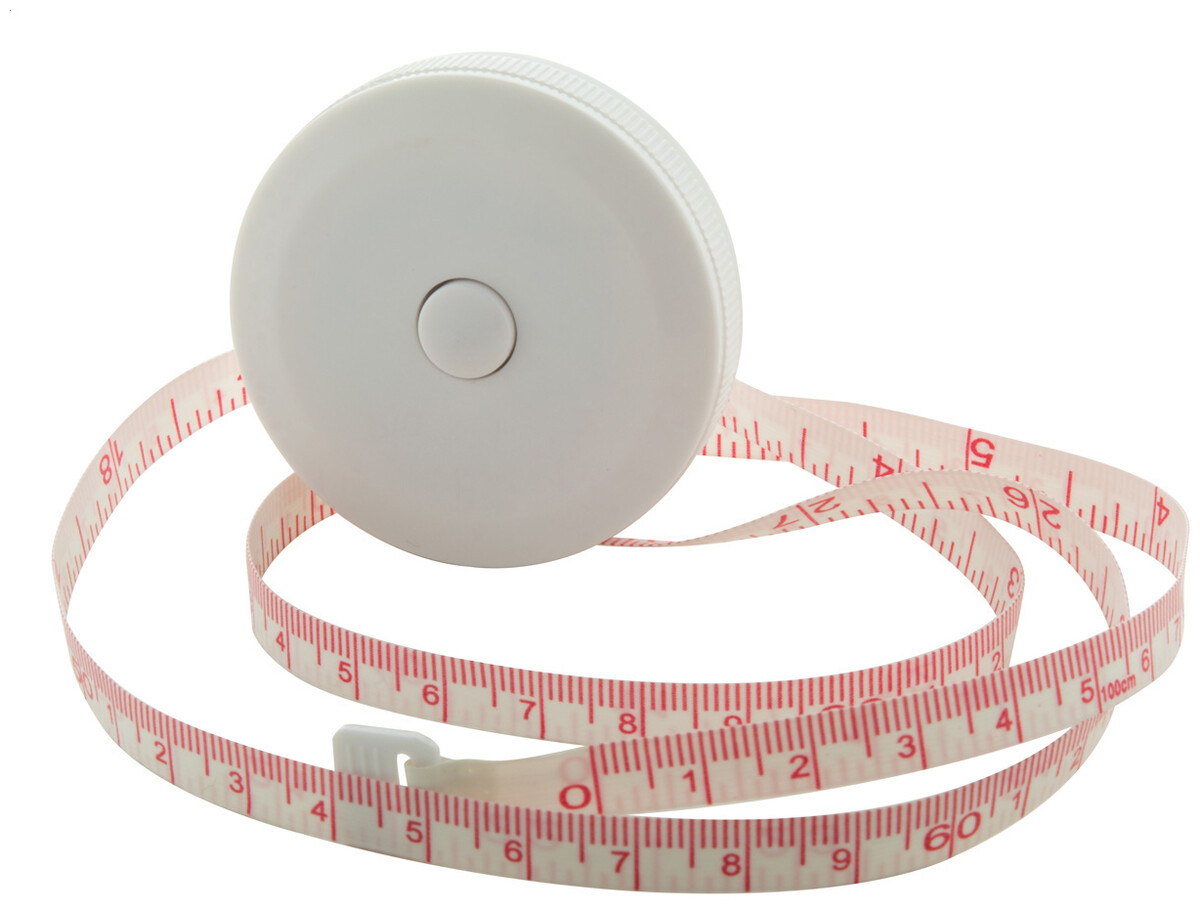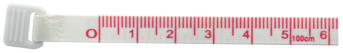 Plastový krejčovský metr se zámkem na knoflík, 1 m. S měřítky cm a palce.