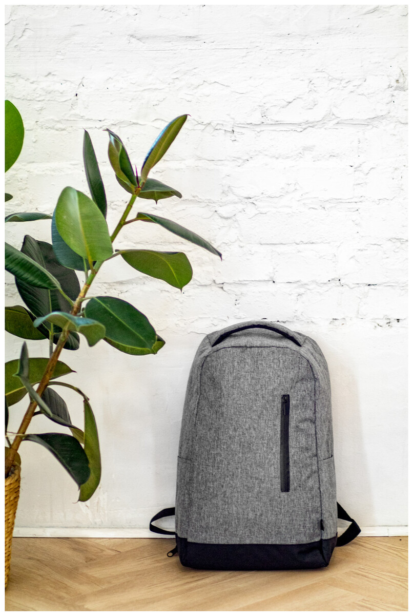 Batoh RPET s přihrádkami na zip, polstrovaná přihrádka na notebook (15 ") a tablet (12"), popruh na vozík, ergonomické zadní a ramenní popruhy. Se skrytou kapsou proti krádeži. 600D RPET polyester.