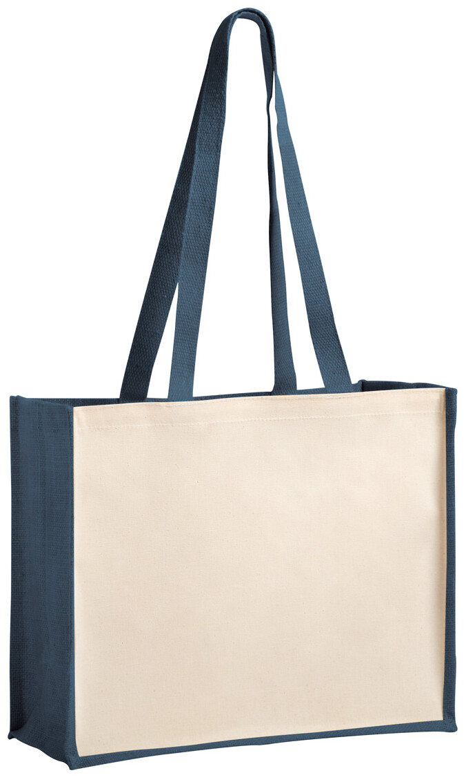 Nákupní taška v kombinaci z laminované juty a laminované bavlny s dlouhými uchy.