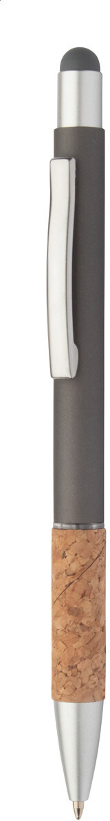 Hliníkové kuličkové a dotykové pero s úchopem z přírodního korku, matným povrchem těla a částí. S modrou náplní.