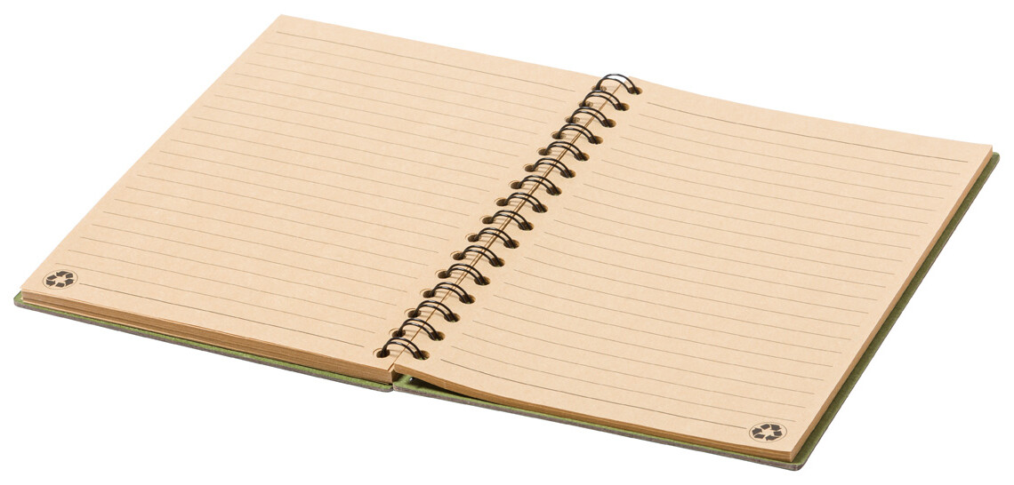 Spirálový blok A5 z recyklovaného papíru s pevnými deskami 80 linkovanými listy.