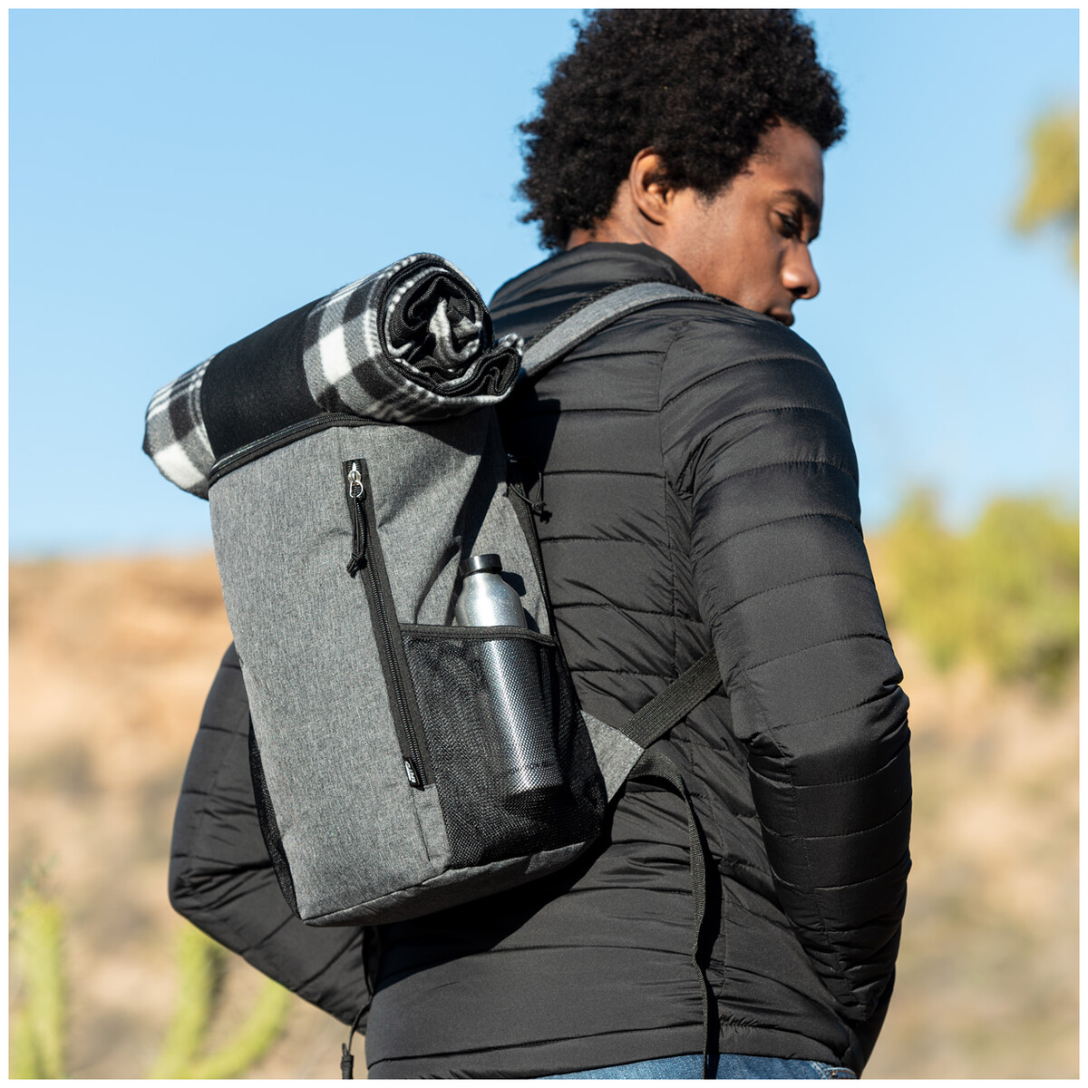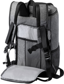 Chladící batoh RPET s hlavní kapsou na zip s PEVA výstelkou, bočními síťovanými kapsami a polstrovanými ramenními popruhy. S výrazným štítkem RPET. Polyester 600D RPET.