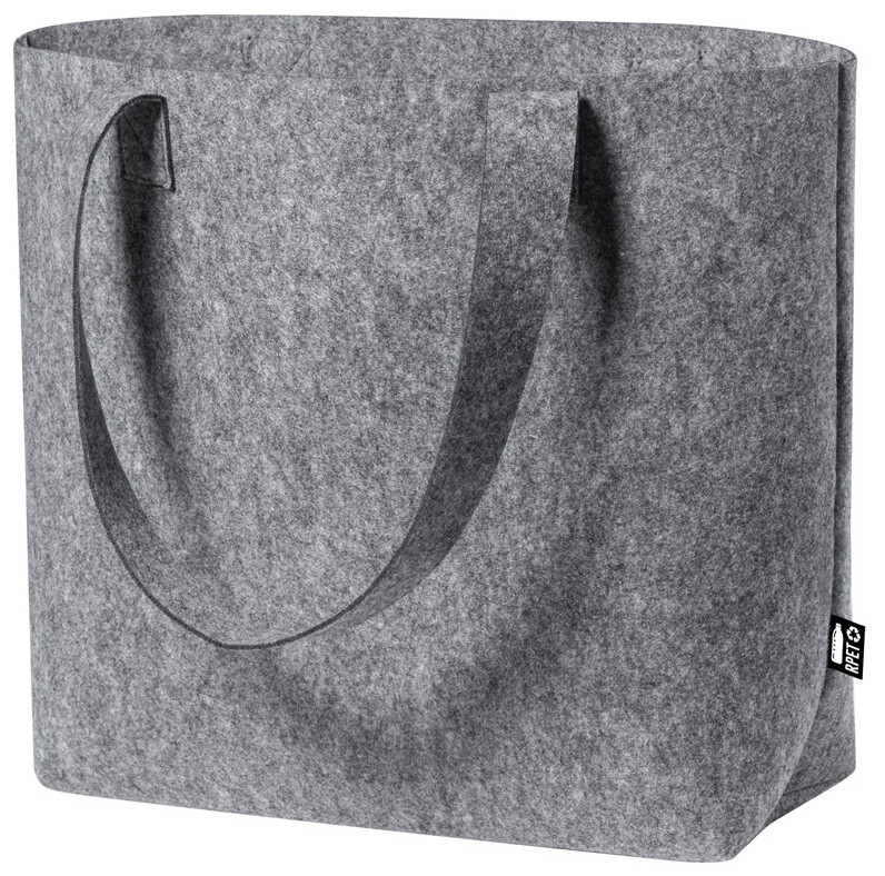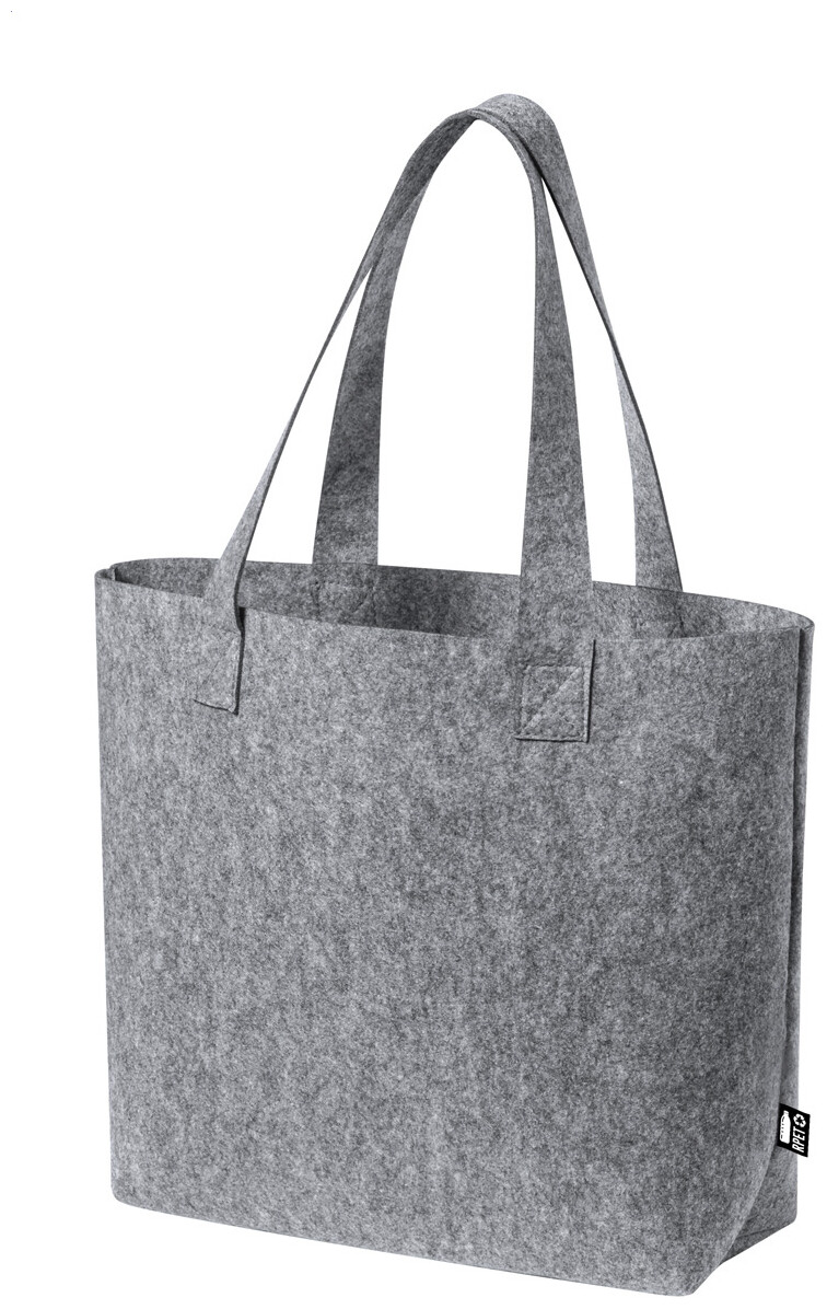Nákupní taška z RPET plsti s dlouhými uchy a rozšířeným dnem. S výrazným štítkem RPET.