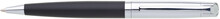 Elegantní kovová otočná propiska Genero s černou spodní a stříbrnou vrchní částí. Laser na propisce je šedo-hnědý. Kolekce Gabrielis.