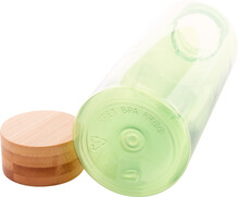 Láhev RPET s bambusovým víčkem, 500 ml. Bez BPA. Nevhodné pro sycené nápoje.