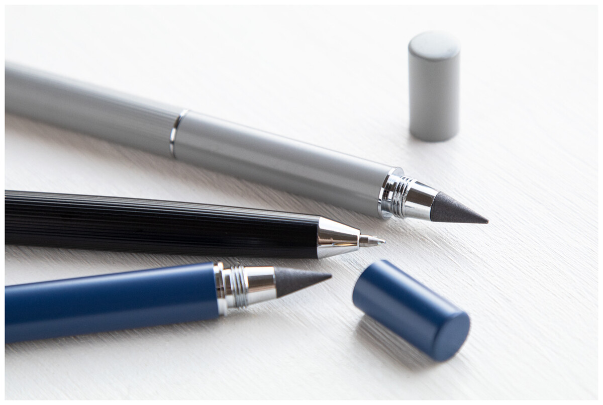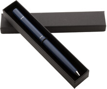 Kovové kuličkové pero 2v1 a pero bez inkoustu v černé dárkové krabičce. S modrou náplní a špičkou z kovové slitiny, která oxiduje papír.