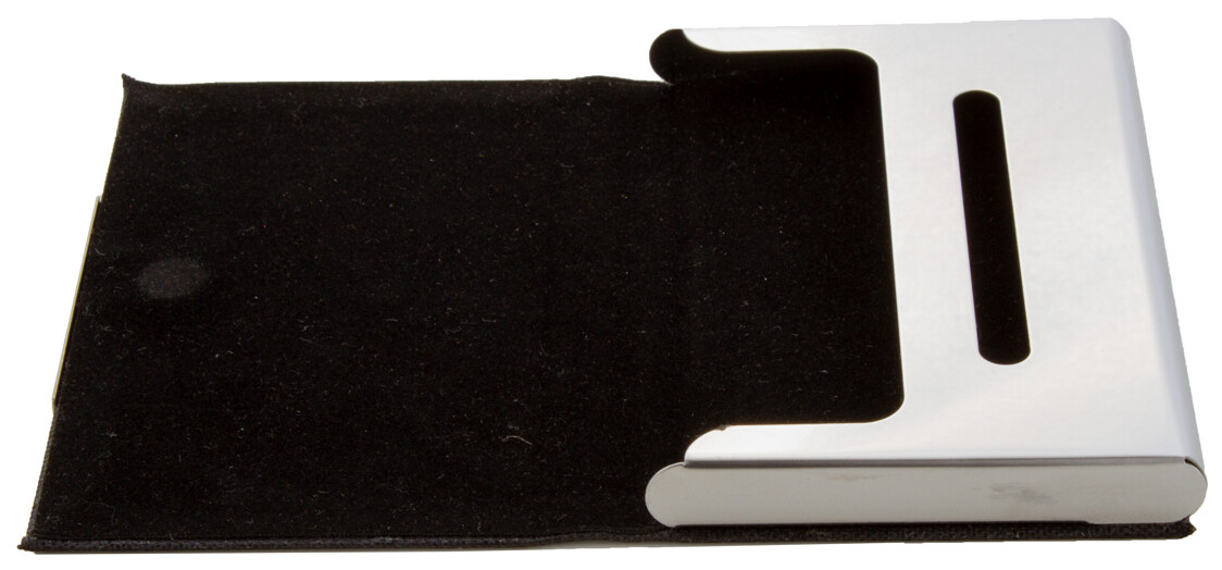 Kovový vizitkář potažený RPET polyesterem s potisknutelnou kovovou částí.