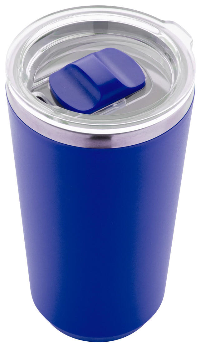 PP plastem pokrytý dvoustěnný, nerezový termo hrnek s víčkem na pití. 500 ml.