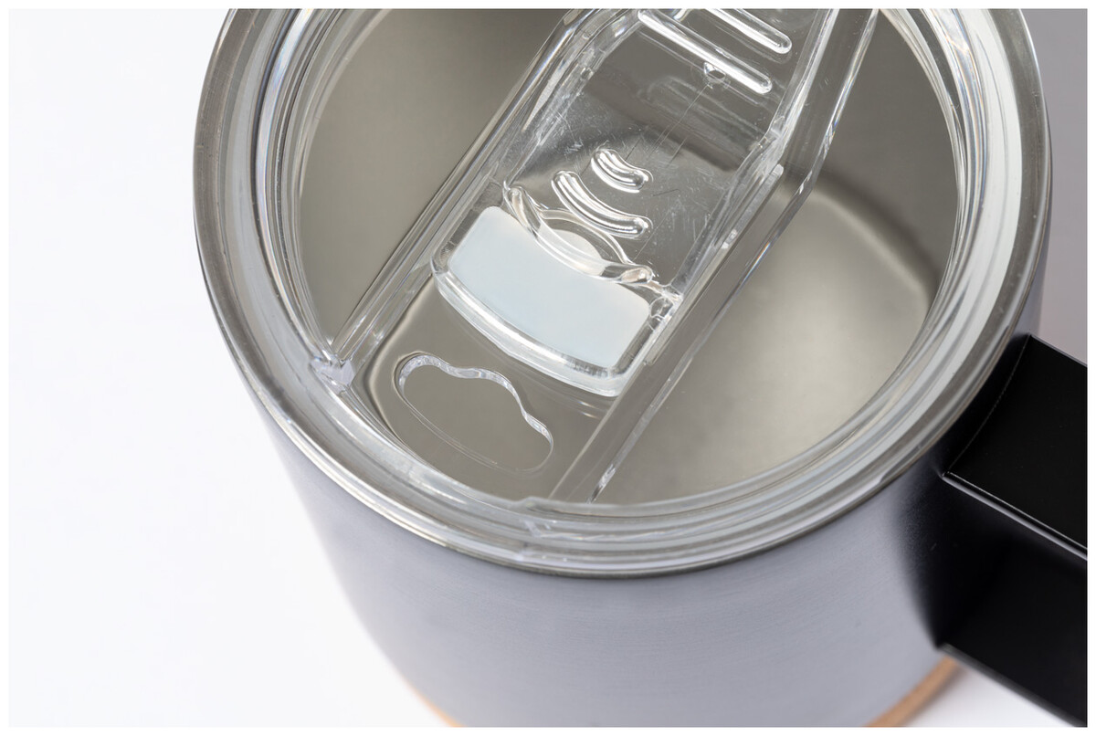 Dvoustěnný nerezový termohrnek s víčkem na pití a dnem z přírodního korku, 330 ml. V kraftové papírové krabici.