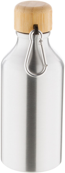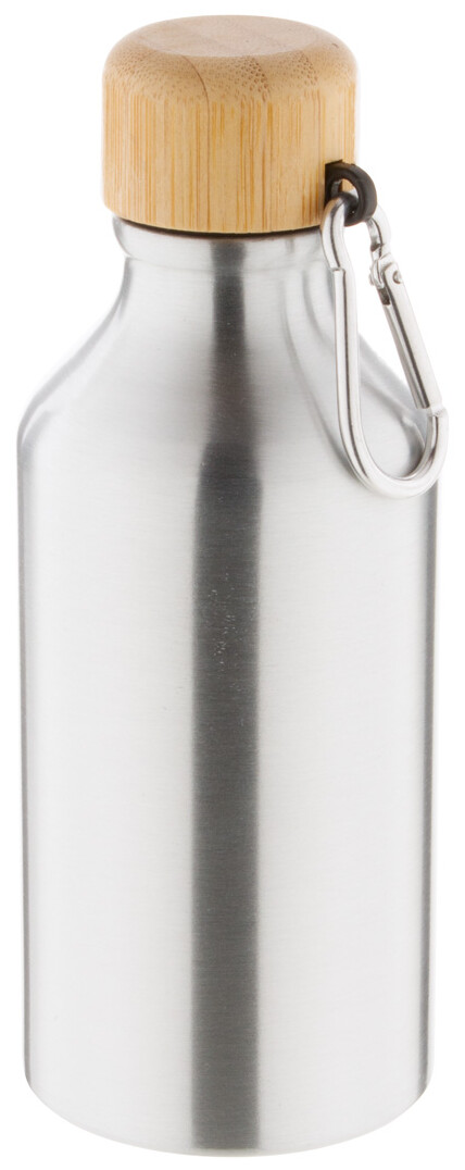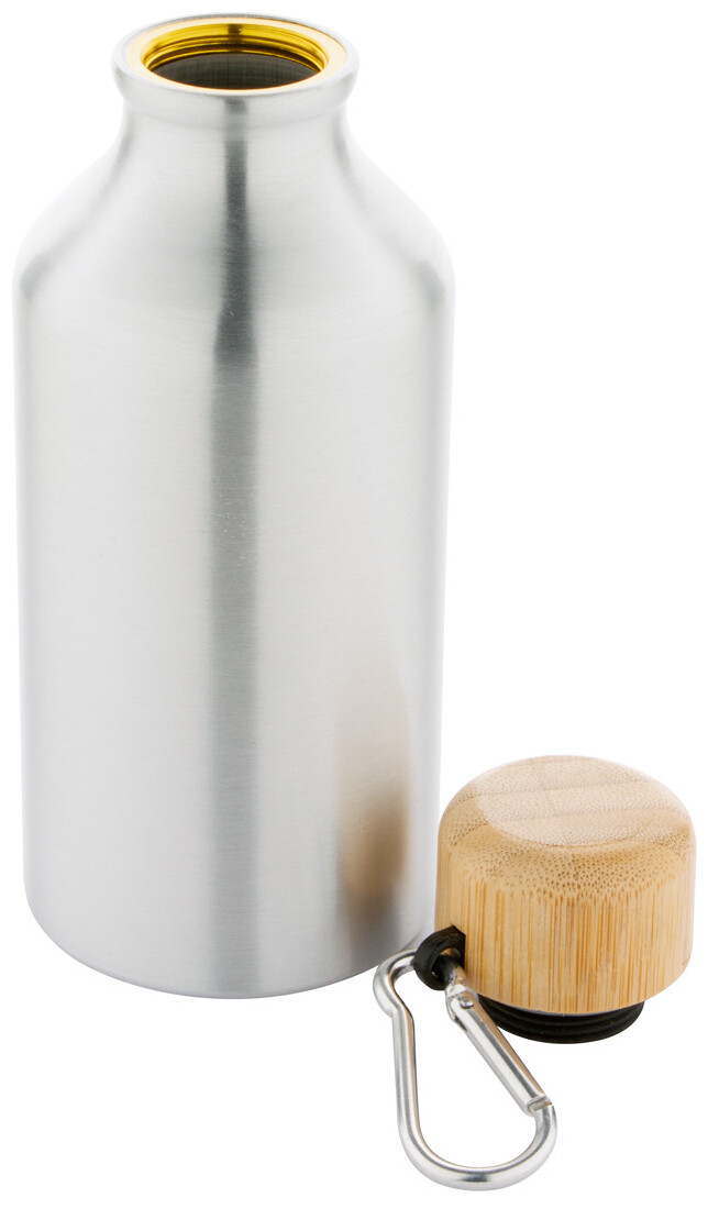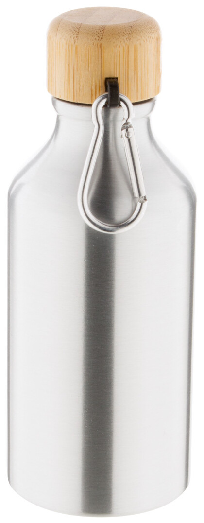 Hliníková láhev s bambusovým víčkem a karabinou, 400 ml.