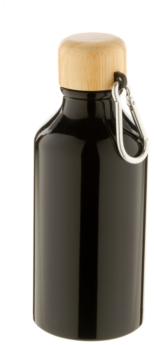 Hliníková láhev s bambusovým víčkem a karabinou, 400 ml.