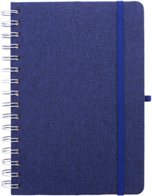 Spirálový blok A5 s deskami potaženými polyesterem RPET s plastovým držákem na mobil a tablet z pšeničné slámy. Se 70 linkovanými listy z recyklovaného kraftového papíru, gumičkou a držákem na pero.