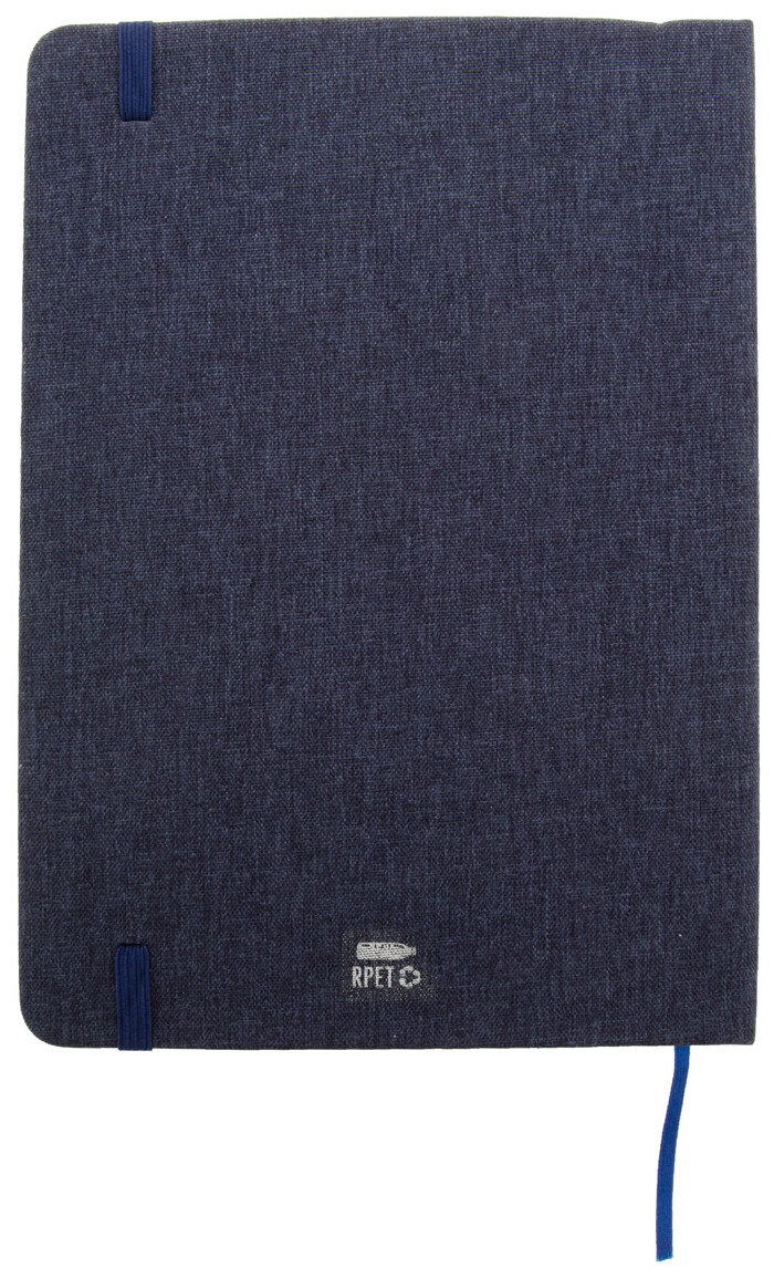 Blok A5 s deskami potaženými polyesterem RPET s bambusovou vložkou a funkcí držáku na mobil. S 80 linkovanými listy z recyklovaného papíru, záložkou a gumičkou.
