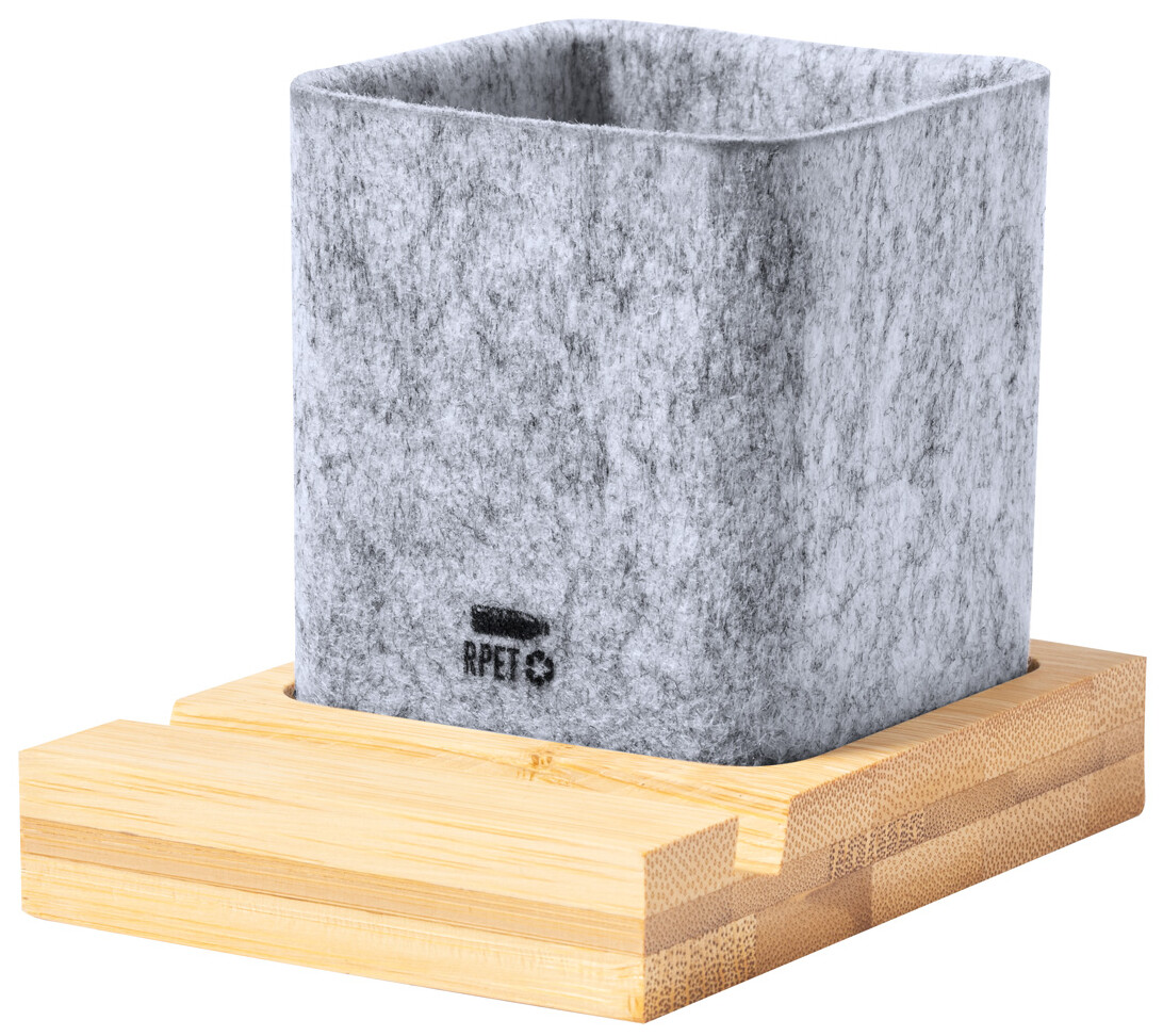 Bambusový stolní organizér se stojánkem RPET na mobilní telefon a na pera.