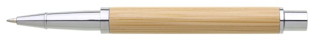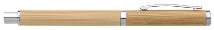 Bambusové gelové pero s víčkem a chromovými doplňky. Náplň velkoobsahová gelová.