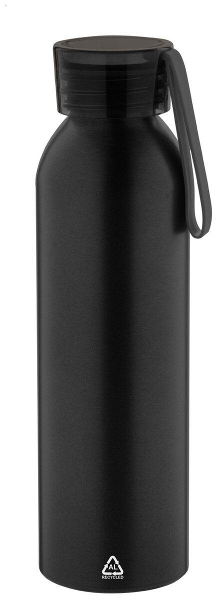 Láhev z recyklovaného hliníku s víčkem v odpovídající barvě a silikonovým popruhem, 600 ml.
