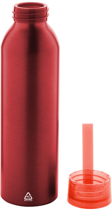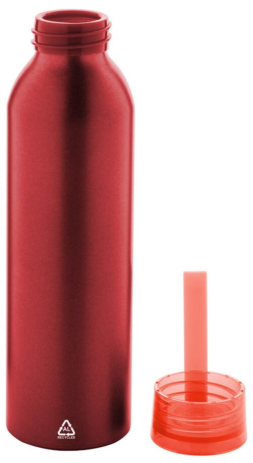 Láhev z recyklovaného hliníku s víčkem v odpovídající barvě a silikonovým popruhem, 600 ml.