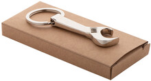 Kovový přívěšek na klíče s otvírákem na láhve ve tvaru klíče. V kraftové papírové krabici.