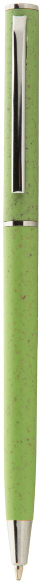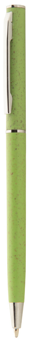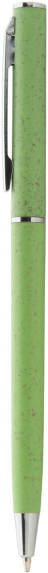 Ekologické plastové kuličkové pero z pšeničné slámy s chromovými detaily. S modrou náplní.