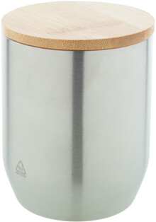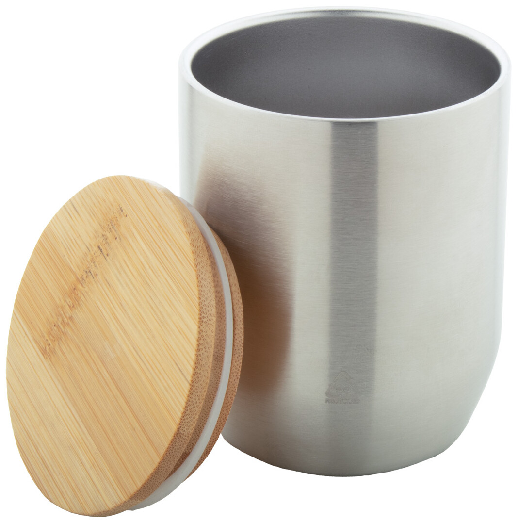 Dvoustěnný termo hrnek z recyklované nerezové oceli s bambusovým víčkem, 300 ml.