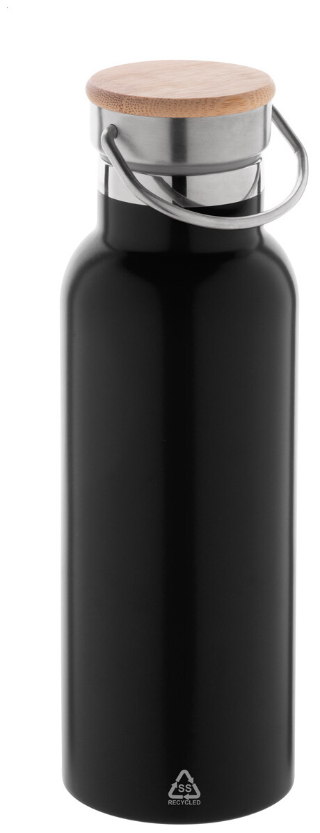 Dvoustěnná vakuově izolovaná termoska z recyklované nerezové oceli s bambusovým víčkem. 500 ml.