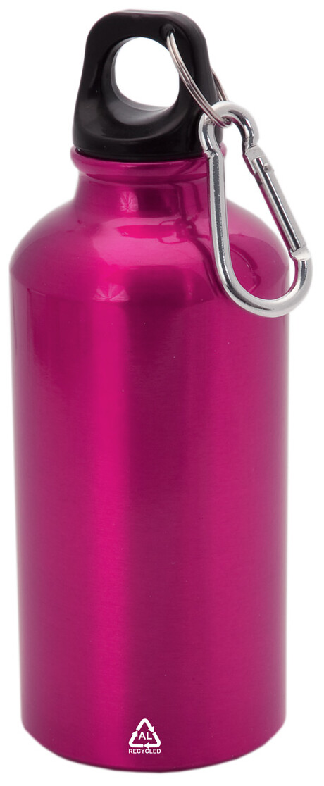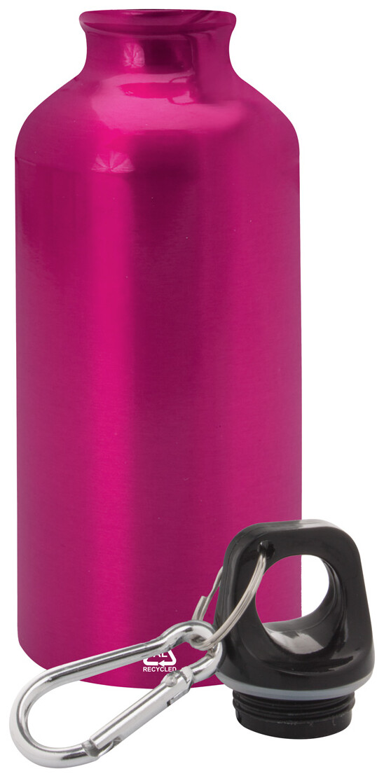 Láhev z recyklovaného hliníku s karabinkou z recyklovaného hliníku, 400 ml.