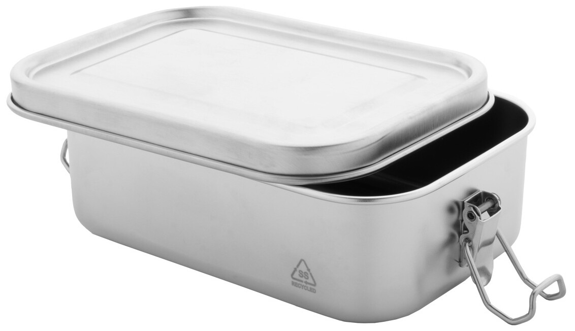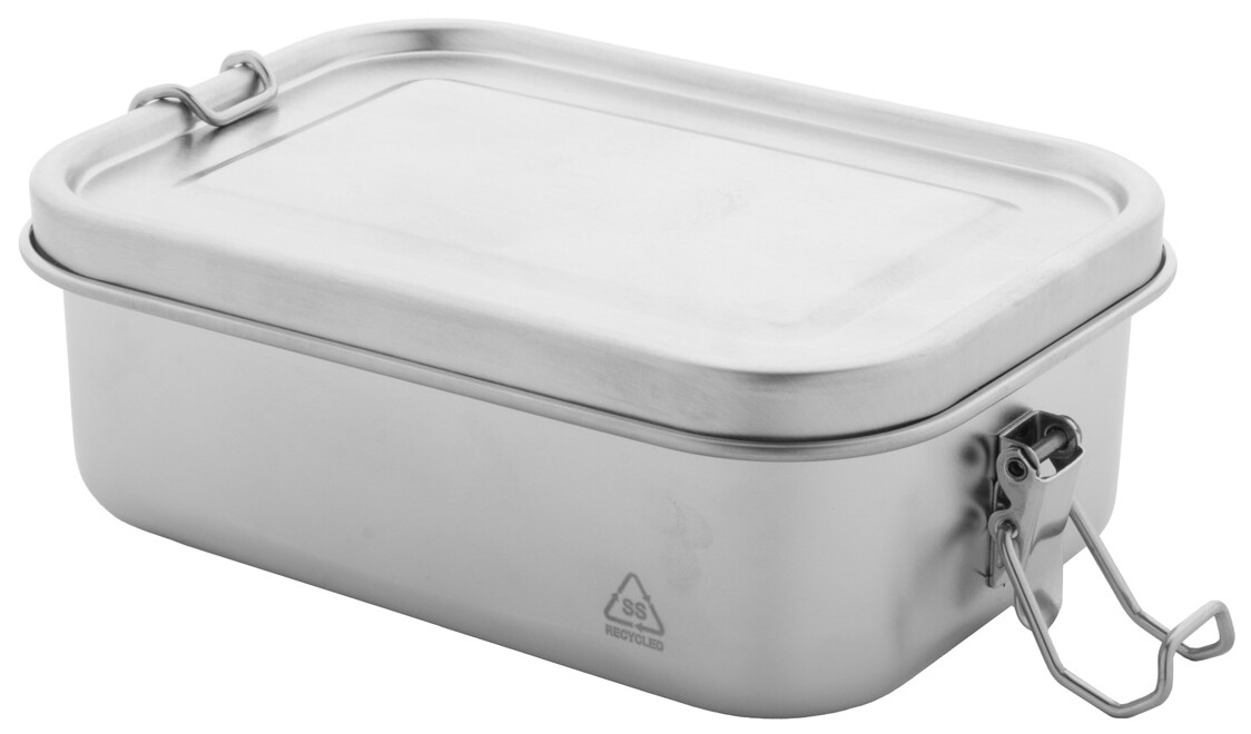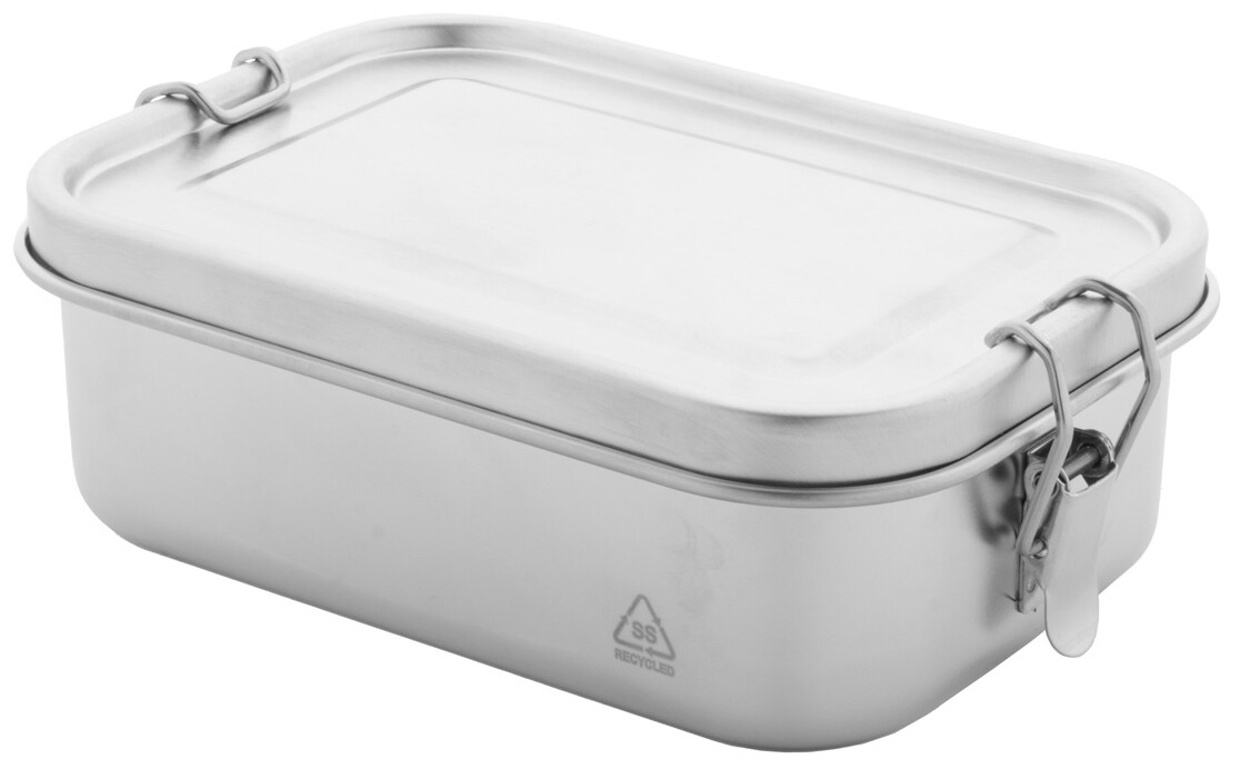 Box na jídlo z recyklované nerezové oceli s bezpečným zavíráním na přezku, 750 ml.