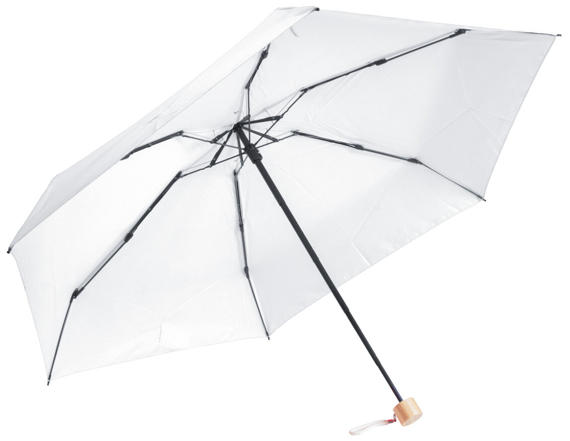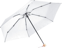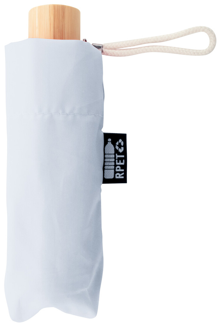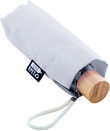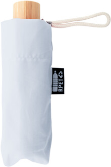 Manuální, větruodolný 3-skládací mini deštník s 6 panely v pouzdru v odpovídající barvě. S kovovým rámem, sklolaminátovými žebry, bambusovou rukojetí a bavlněným poutkem na ruku. 190T RPET pongee, s výrazným štítkem RPET.