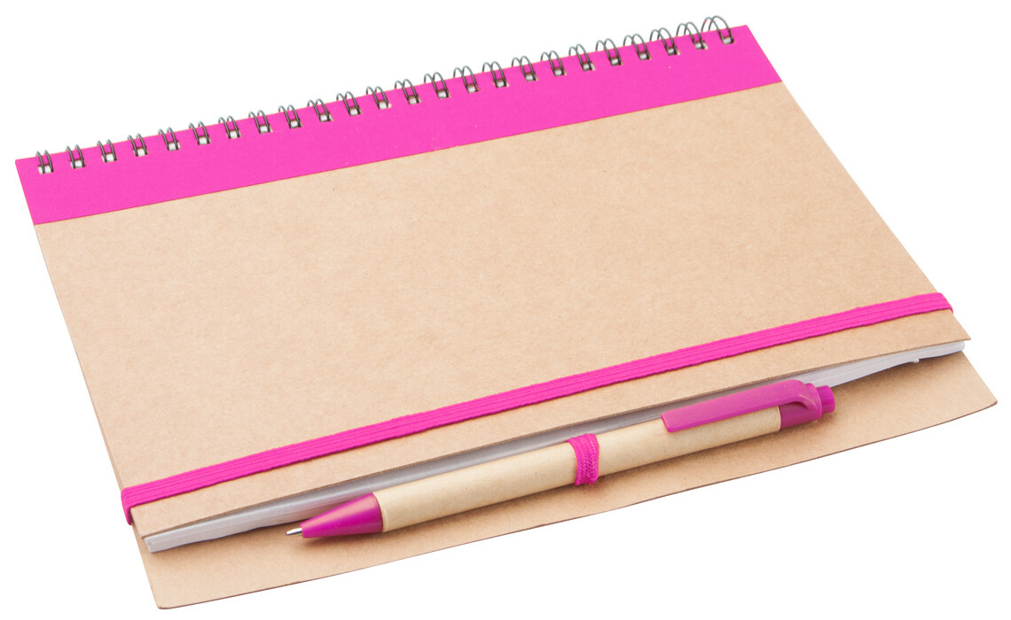 Nelinkovaný blok z recyklovaného papíru, se 60 listy a s papírovým kuličkovým perem.