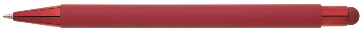 Červené pogumované matné tělo propisky doplňují lesklé doplňky v barvě těla a matný touch konec. Logo po vylaserování je lesklé stříbrné. Velkoobsahová modře píšící náplň.
