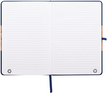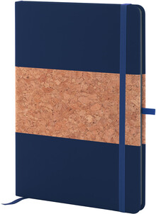 Blok A5 potažený přírodním korkem a recyklovanou PU kůží se záložkou v odpovídající barvě, gumičkou a držákem na pero. S 80 linkovanými listy z recyklovaného papíru.