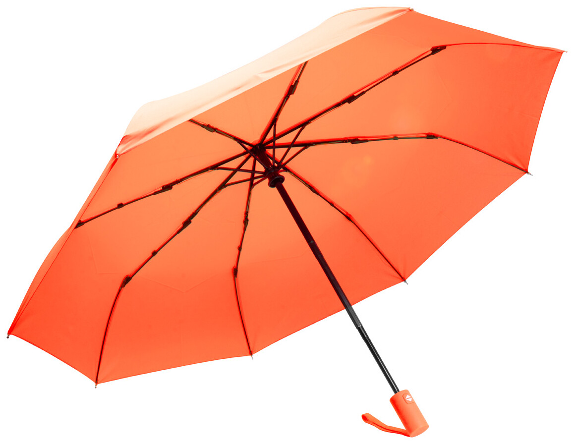Plně automatický (otevřít/zavřít), větruodolný skládací deštník s 8 panely v pouzdře ve stejné barvě. S kovovým rámem, sklolaminátovými žebry a pogumovanou rukojetí. Pongee 190T RPET. S výrazným štítkem RPET.