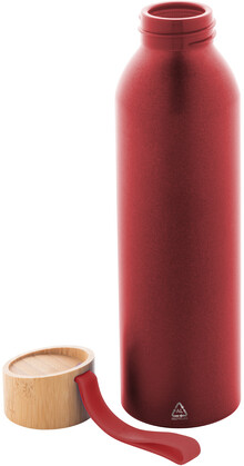 Láhev z recyklovaného hliníku s bambusovým víčkem a silikonovým popruhem v odpovídající barvě, 600 ml.