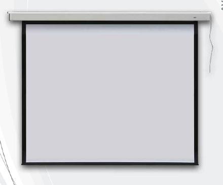 Nástěnné projekční plátno s elektrickým stahováním s dálkovým ovládáním, formát 4:3, matný bílý povrch a černá bordura zaručují kvalitní obraz, plátno lze připevnit i na strop.
