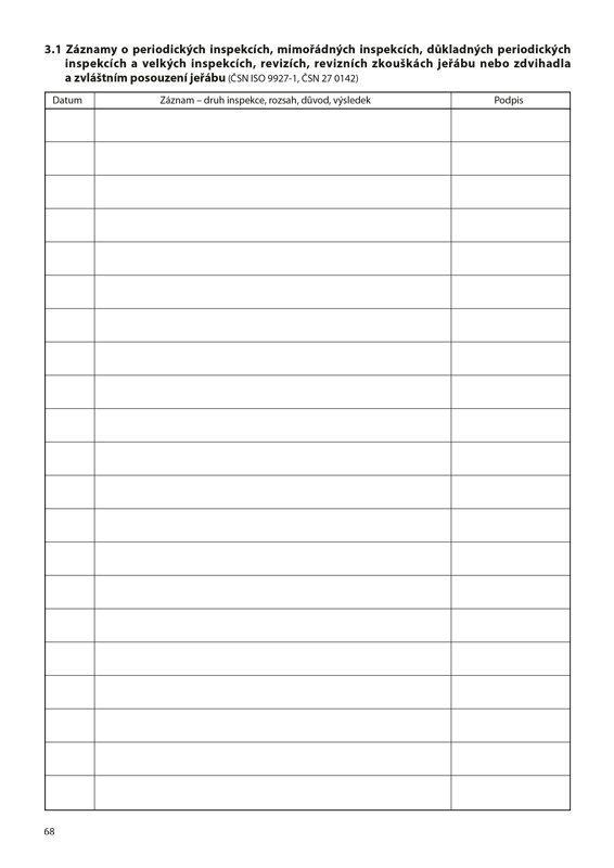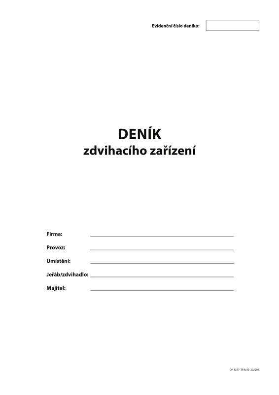 Deník zdvihacího zařízení slouží k vyplnění záznamů o provozu zdvihacího zařízení, závadách, provedených opravách, čištění a kontrolách zdvihacího zařízení.