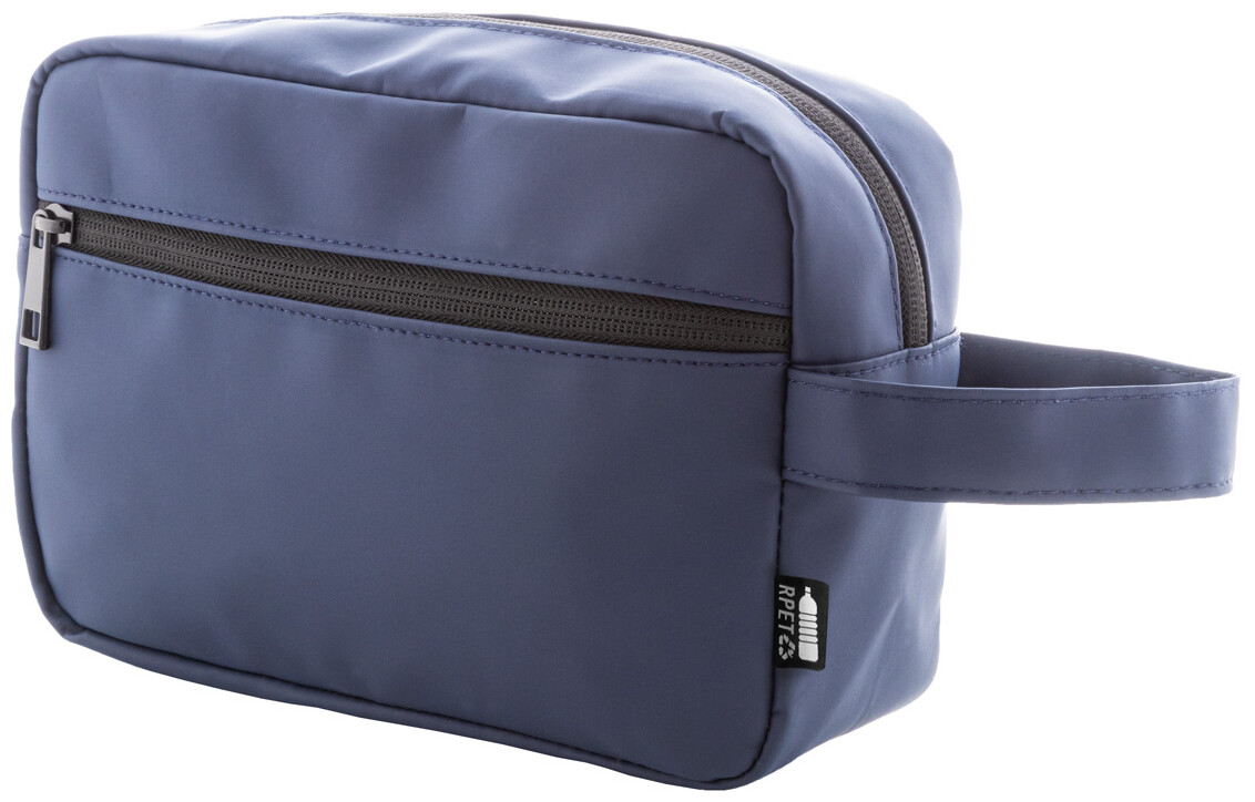Kosmetická taštička z měkké recyklované PU kůže se dvěma přihrádkami na zip a uchem. S výrazným recyklovaným PU štítkem.