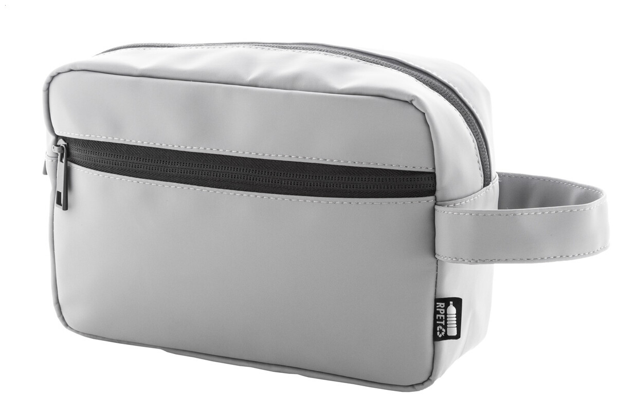 Kosmetická taštička z měkké recyklované PU kůže se dvěma přihrádkami na zip a uchem. S výrazným recyklovaným PU štítkem.