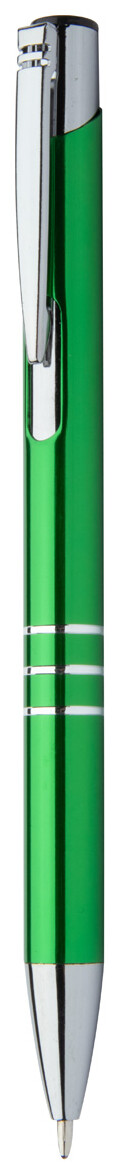 Kuličkové pero z recyklovaného hliníku s metalickým povrchem a modrou náplní.