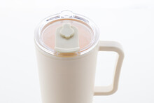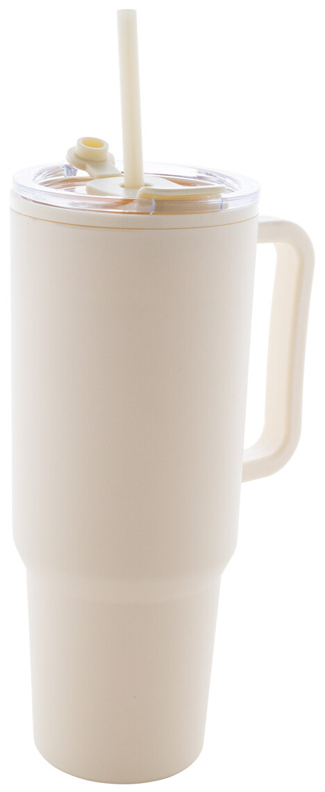 Dvoustěnný termo hrnek izolovaný PP plastem s víčkem na pití a brčkem. 1100 ml.