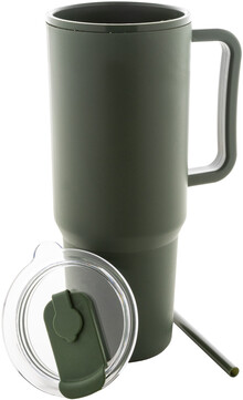 Dvoustěnný termo hrnek izolovaný PP plastem s víčkem na pití a brčkem. 1100 ml.
