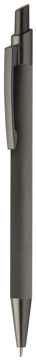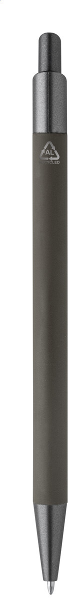 Kuličkové pero z recyklovaného hliníku s pogumovaným tělem a kovovými částmi. S modrou náplní.