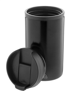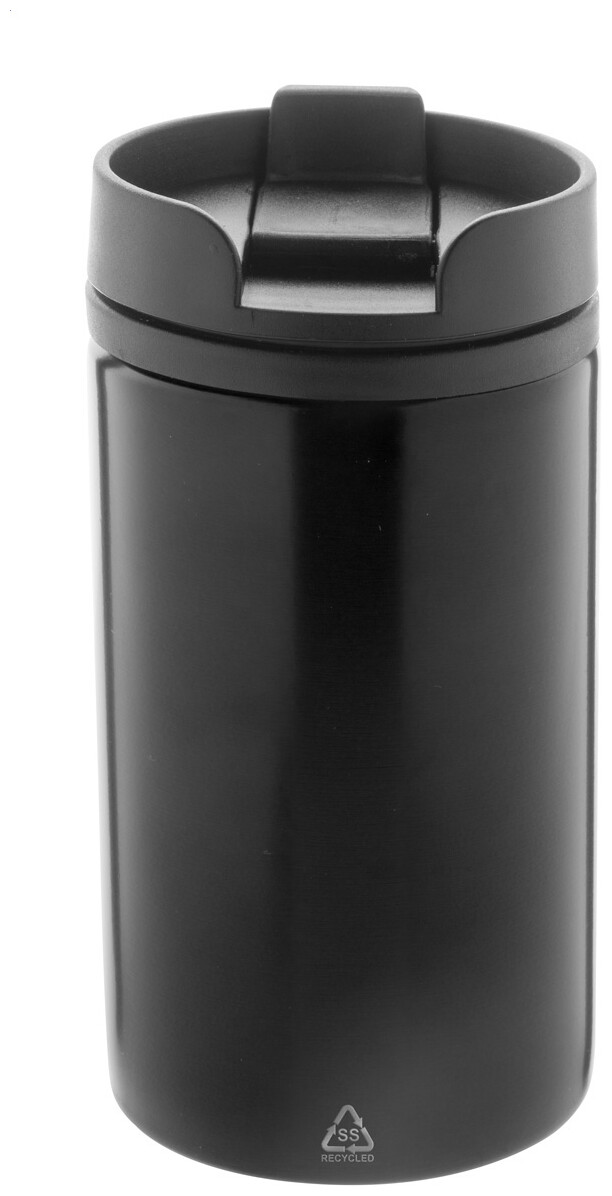 Dvoustěnný izolovaný termo hrnek z recyklované nerezové oceli s PP plastem uvnitř a víčkem na pití. 250 ml.